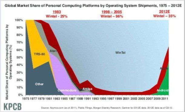 - Mobile operating systems (smartphones & tablets) already have 65% of the operating system market, vs. Windows at just 35%.